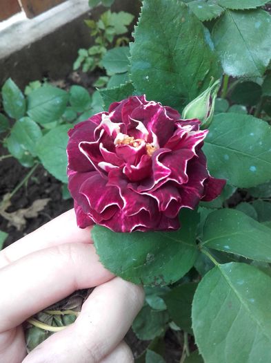 I se potriveste numele pentru ca este si foarte pretentios si pentru ca dupa aproximativ cinci ani devine un simplu trandafir bordo. Nici nu stiu de ce mi-l doresc atat de tare ca pana acum nu am reusit sa il am in gradina. Unul dintre cei plantati desi parea uscat a inceput sa lastareasca si parea promitator pana cand peste noapte l-a devorat ceva ca nu mai avea dacat urme de frunze. A doua zi ... hocus-pocus ... a disparut din peisaj.